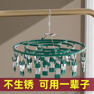 ステンレス製多機能物干しハンガー、24個のクリップ付き、防風、靴下掛け、衣類、下着ハンガー、靴下ハンガー