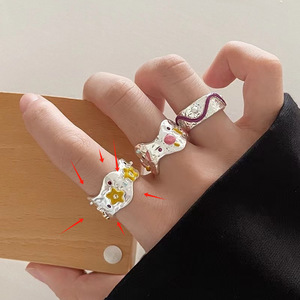 パーソナライズされたホワイトブルーエナメルオイルドリップバタフライオープンリング女性用ニッチハイエンドライトラグジュアリーオールマッチングカップルリング