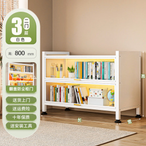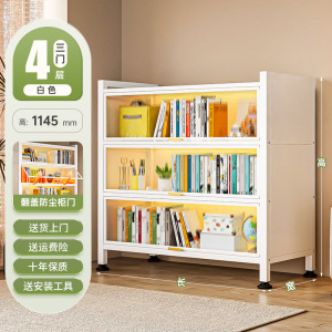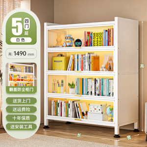 家用钢制书柜带门儿童书架客厅收纳柜防尘铁艺储物柜卧室置物柜子