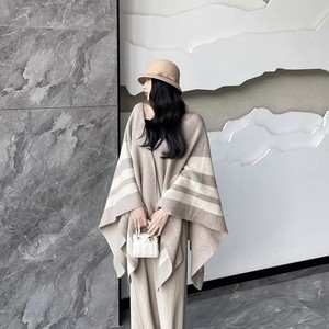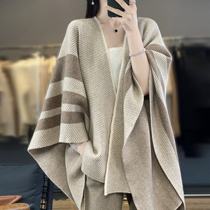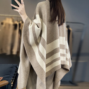 2025 秋と冬の新 100% ピュアウールビッグショールスカーフカラーマッチングレトロスタイルカシミヤマントアウターマント女性のための