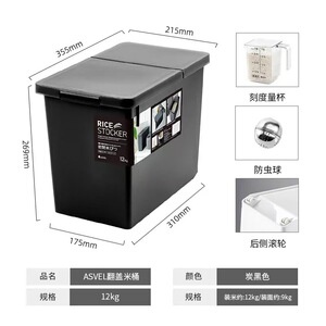 日本ASVEL 米樽 家庭用防虫防湿密閉米箱 米筒 小麦粉麺樽 穀物保存樽