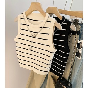 アイスシルク薄いコントラストストライプベスト女性の夏スリムフィットノースリーブボトムストップ露出防止ベストサスペンダー