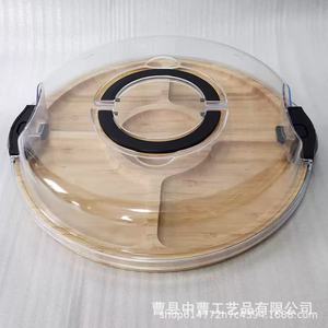 竹分割ディナープレート家庭用フルーツスナック盛り合わせリビングルームドライフルーツプレート透明な収納ボックス付き