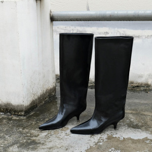本革キャットヒールヨーロッパとアメリカンスタイルのファッションブーツ女性用2025新しいワイドバージョン大きなチューブウエストスリムミッドカーフブーツショートブーツ