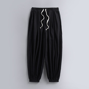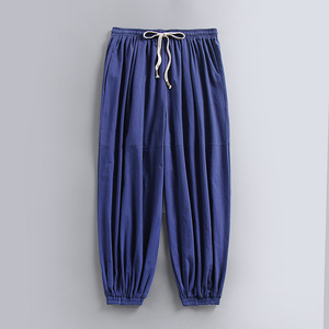 大きいサイズのレギンスカジュアルパンツメンズ夏薄い通気性のある綿とリネンの伸縮性ウエストレトロリネンパンツトレンディな9点パンツ