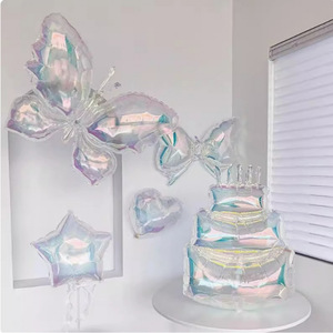 新しいレーザーカラフルな透明なカラフルなリボン子供用アルミフィルムバルーンピーチハート誕生日パーティーレイアウトスタイル