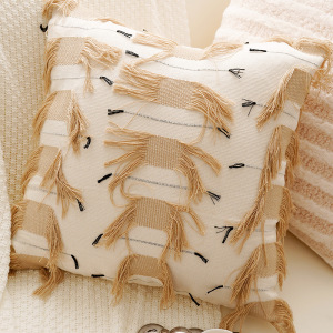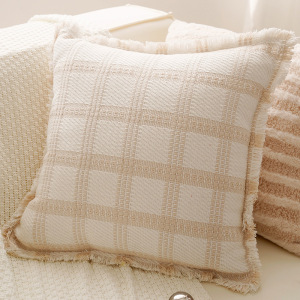 カーキチェック柄タッセルスクエア45x45cm個別枕カバー