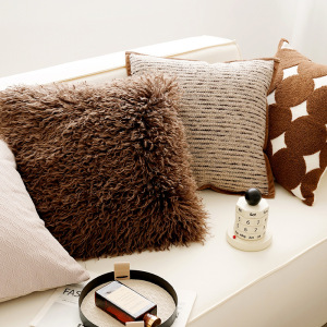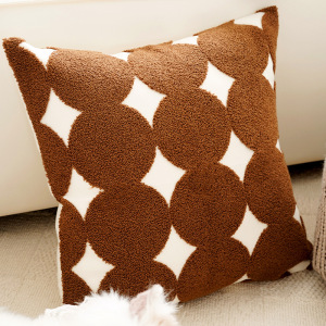 ループベルベットブラウンファンタジーパターン正方形45x45cm個別枕カバー