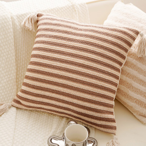 カーキ織り小ストライプ正方形 45x45cm 個別枕カバー