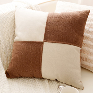 ブラウンヘリンボーンミルキーホワイトチェッカーボードパッチワークスクエア45x45cm個別枕カバー