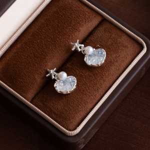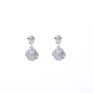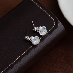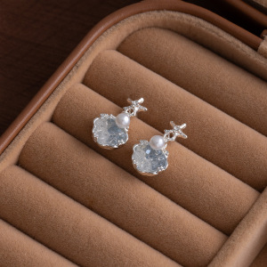 シルバーニードルビーチリゾートスタイルダイヤモンドパールイヤリングシンプルな個性ニッチ甘い気質ハイエンドイヤリング女性用