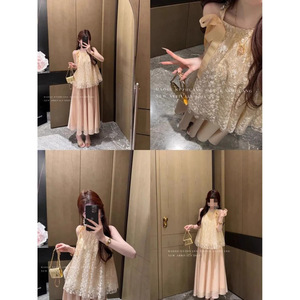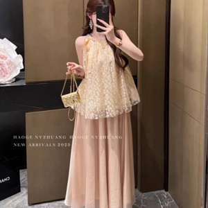D6X フレンチ年齢軽減リボンサスペンダーレースベビードールトップ女性の夏の新しいファッションスカート 2 枚