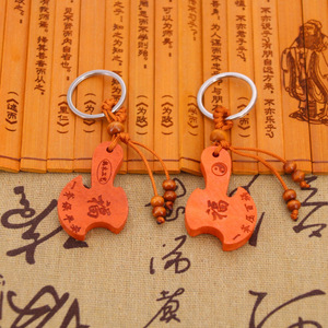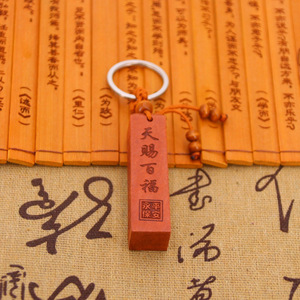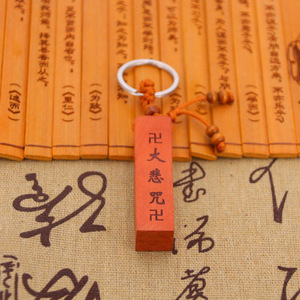 桃木方柱金刚经钥匙扣圆形创意钥匙链小礼品地摊批发抖音直播货源
