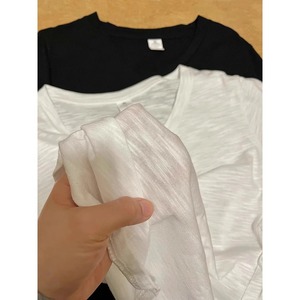 薄いVネック右肩半袖レディースホワイトベーシックボトムストップ夏カジュアルルーズバンブーコットンTシャツ