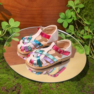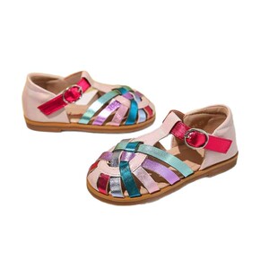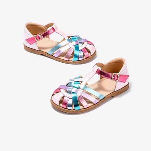 女の赤ちゃん包頭サンダル 2025 夏女の子衝突防止ソフトソールカラフルな織靴子供中空かわいいプリンセスシューズ
