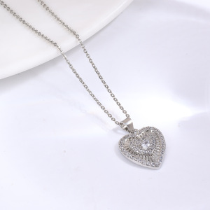 ファッショナブルなクロスボーダーマイクロ象嵌ジルコン幾何学的なピーチハートネックレスペンダントジュエリー銅メッキ 18k ストライプラブハーフダイヤモンドラブハート