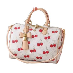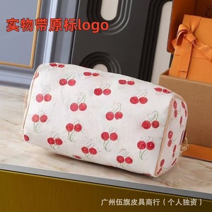 新しいスピーディソフト 30 老眼/白花本革チェリー枕バッグシングルショルダー斜めハンドヘルドレディースバッグ