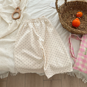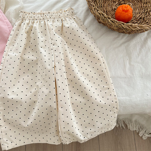 女童花苞腰直筒裤女宝宝棉质纯色波点长裤女孩休闲裤童装春夏款