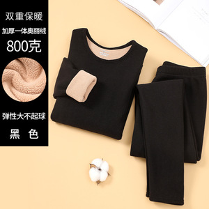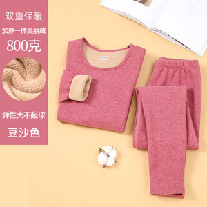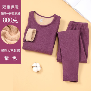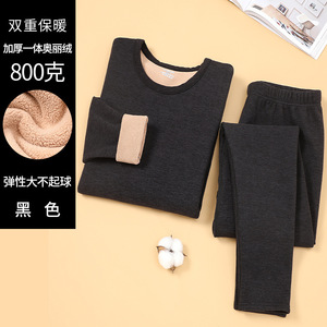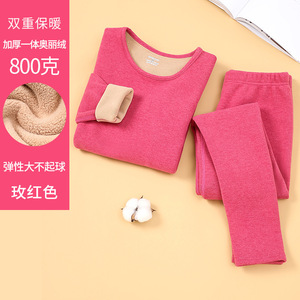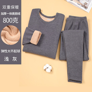 厚みのある暖かいオリベルベット下着セット、秋冬の男性と女性、中高年の秋服と長ズボンのラウンドネックセット