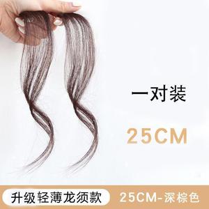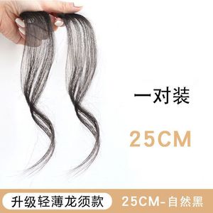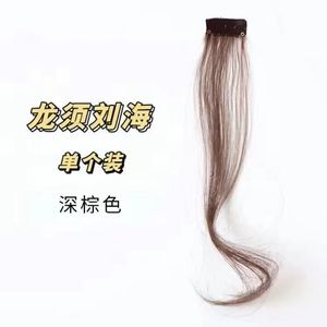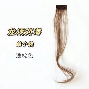 両側に少しカールした前髪付きの龍ひげ前髪ウィッグ、顔を整えるミドル分け、自然で目立たない少しカールした前髪ウィッグ