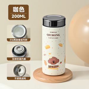 ミニセラミックライナーサーモスカップ、ポータブル、かわいい、コンパクトポケットカップ、小容量、女性が持ち歩くウォーターカップ