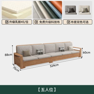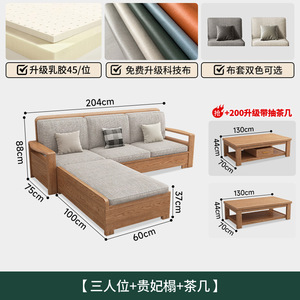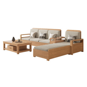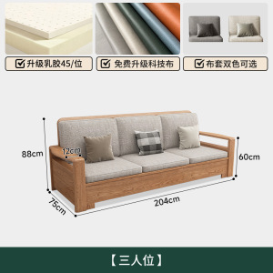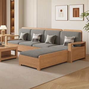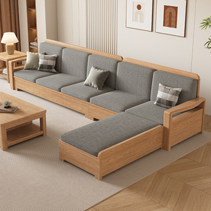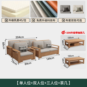 北欧アッシュ無垢材ソファ組み合わせファブリックソファモダンシンプル大小リビングルームログカラー家具
