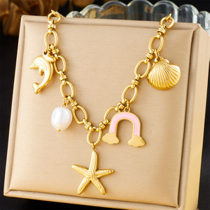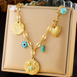 ヨーロッパとアメリカのファッションレトロな個性星/クロス/星と月のパターン/愛のペンダントステンレス鋼ゴールドメッキネックレス