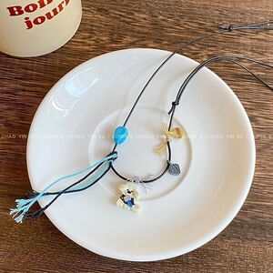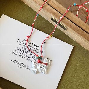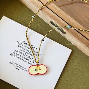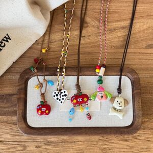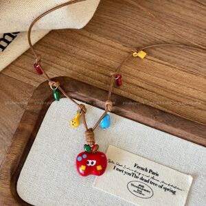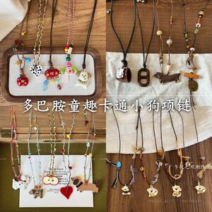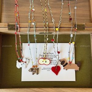 夏にぴったりの子供っぽい子犬のリンゴペンダントネックレス、女性用のかわいいドーパミンロング織りセーターチェーン
