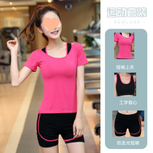 V5H 【スポーツ3点セット】ヨガ フィットネスウェア セット レディース サマーモーダル ランニング ショート カジュアル 胸パッド付き