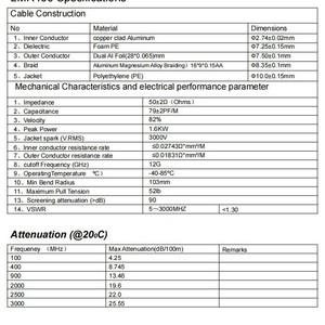 LMR400 低損失同軸ケーブル 1 メートルあたりの低損失同軸ケーブル