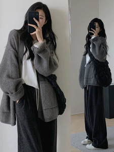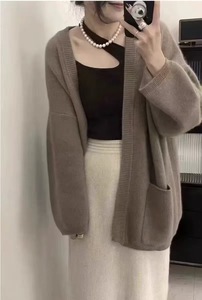 SheTiJia 2025 レトロスタイルポケット V ネックジャケットリブ襟セーター女性のニットカーディガン外国貿易クロスボーダールーズ