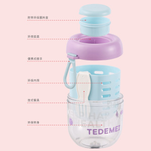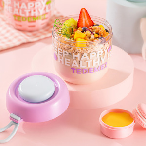 Younxiang カジュアルな脂肪減少サラダカップ、テイクアウトフルーツカップ、二層排水軽食カップ、オフィスワーカー向けのポータブル朝食カップ