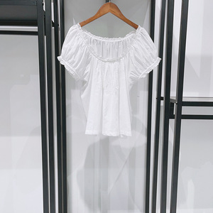 フレンチニッチ2025夏優しくロマンチックなレース同色刺繍小花大ラウンドネックトップ25467