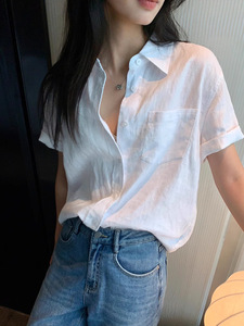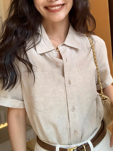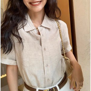 リネン半袖シャツレディース夏デザインニッチ通勤ルーズカジュアルシャツ気質トップ
