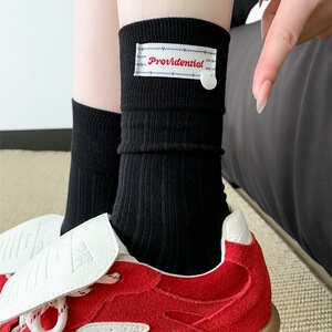 韓国風グレー布ラベルシェルソックスレディースミッドカーフソックス春と秋の純綿夏ボンレスパイルソックスビルケンシュトックシューズ付き
