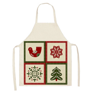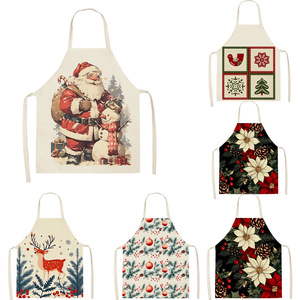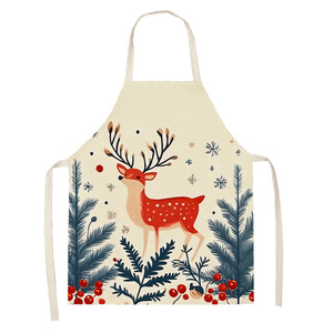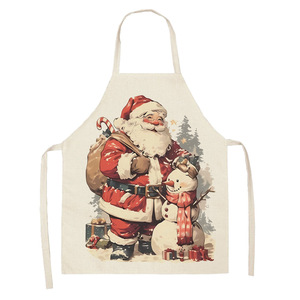 クロスボーダークリスマス漫画サンタクロースエプロンリネンベーキング防汚スモックキッチンホルタークリーニングエプロン