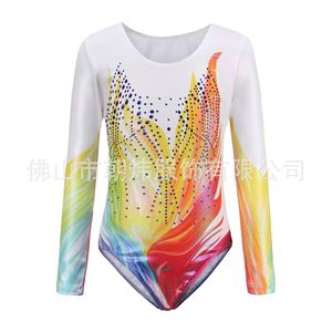 现货儿童彩钻女童体操服烫金儿童舞蹈服表演服紧身衣儿童练功服