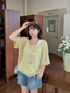 Shuangtian 2025 夏の新大きいサイズの女性のルーズレイジースタイルメッシュブラウスベスト 2 点セット 8998