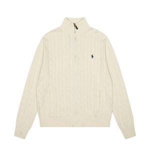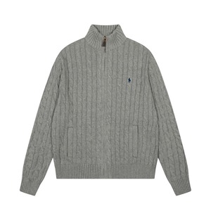 QRコードでスキャン可能~RL刺繍入りポニーロゴ、フルジップ、ツイストニット、カジュアルで万能なセーター、男女兼用
