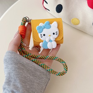 PU レザー Airpods 保護カバー外出ポータブル Bluetooth ヘッドセット収納レザーケースストラップ付きメーカー卸売