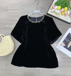 人気の高品質シルクベルベットスーツ、ラウンドネックビーズ半袖トップ、バイアスカットスリット、ヘビーエンゲージメント刺繍スカート