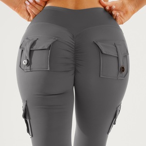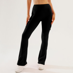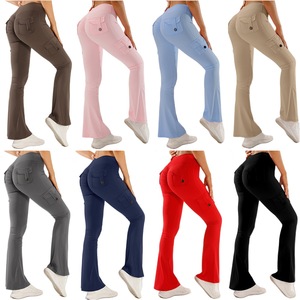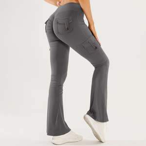 欧美跨境工装口袋瑜伽裤女提臀运动健身紧身喇叭裤瑜伽服休闲