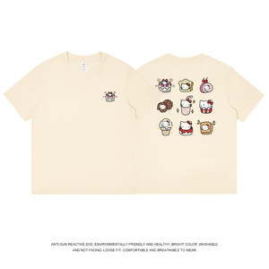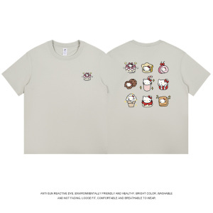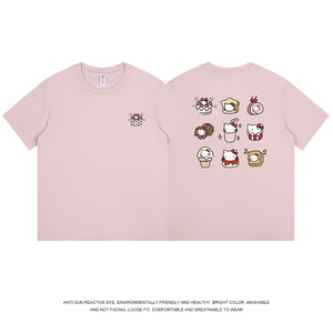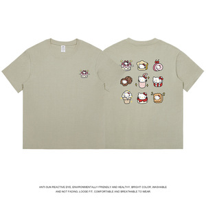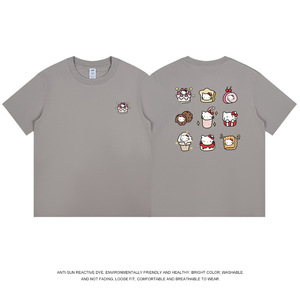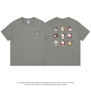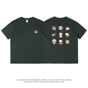 和風九格子猫プリント半袖 Tシャツメンズ純綿夏トップス通勤かわいいレディース Tシャツトレンディなニッチ卸売