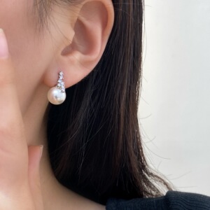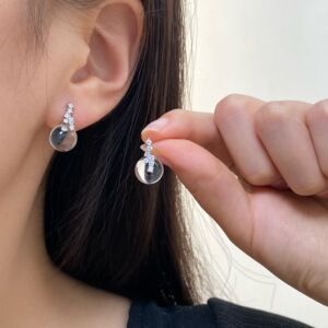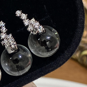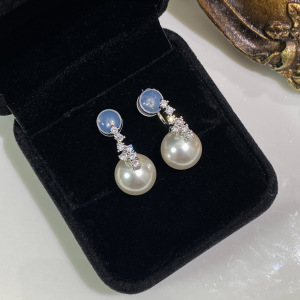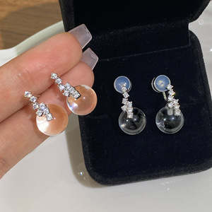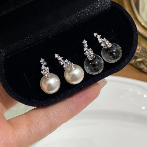 ニッチなデザイン、ファッショナブルで絶妙なマイクロ象嵌ジルコン透明な大きなラウンドビーズパールイヤークリップ清河ハイエンドイヤリング