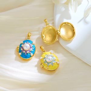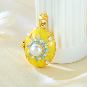ヨーロッパとアメリカのクロスボーダーニッチデザインハイエンドクリエイティブファッションカラフルなオイルドリップフォトボックス銅金メッキネックレスペンダント女性用