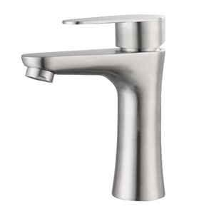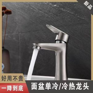 不锈钢拉丝小蛮腰冷热单孔面盆水龙头台下盆洗脸盆洗手盆水龙头