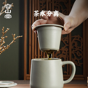 Rongshantang 天青ル窯セラミックオフィスカップティーカップ茶水分離カップオフィスウォーターカップ個人用