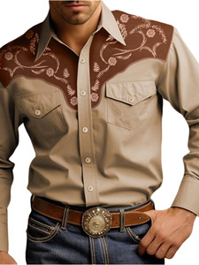 越境アマゾン独立ステーション新しい 3D プリントメンズファッションウエスタンスタイル長袖シャツトップ