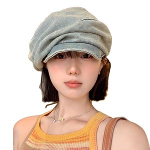 日本のニッチなレトロな綿とリネンのプリーツクラウドベレー帽女性のための春と秋の顔見せキャスケット帽子八角形画家の帽子
