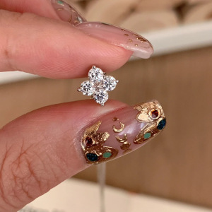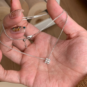 軽奢風S925シルバーダイヤモンド四つ葉のクローバー鎖骨チェーン レディース ミニマリストファッション マイクロインレイ四つ葉のクローバー エレガントで万能なイヤリング